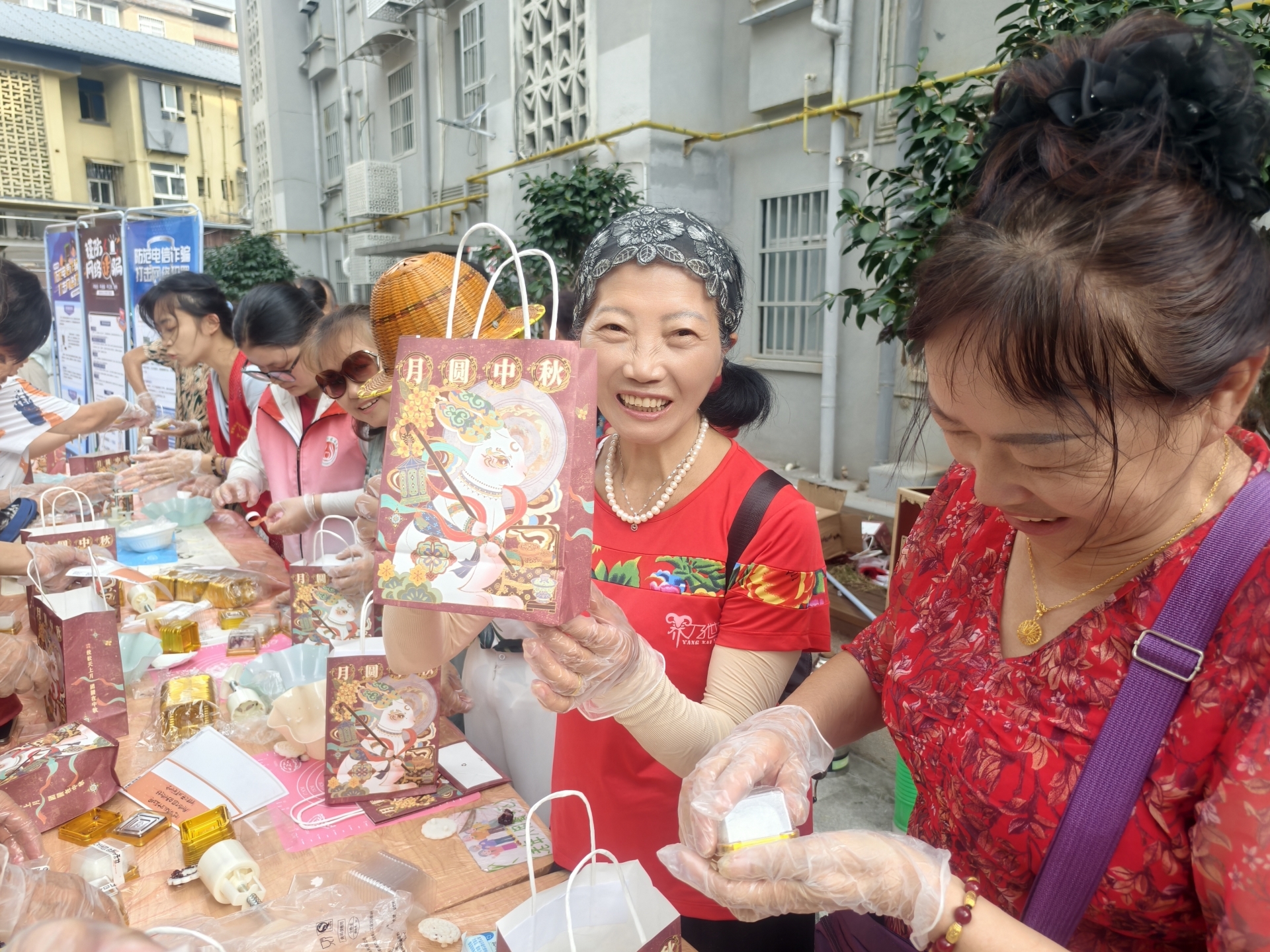 活动拉开序幕,社区精心筹备的“包月饼”环节瞬间点燃了节日的热烈氛围。工作人员把提前备齐的豆沙馅、紫薯馅等多样食材分发给居民,志愿者现场示范制作流程。居民们围坐一起揉面、包馅、压模,在欢声笑语中完成一个个造型精美的月饼。现场其乐融融,不少居民表示“自己包的月饼更有节日味道”。
