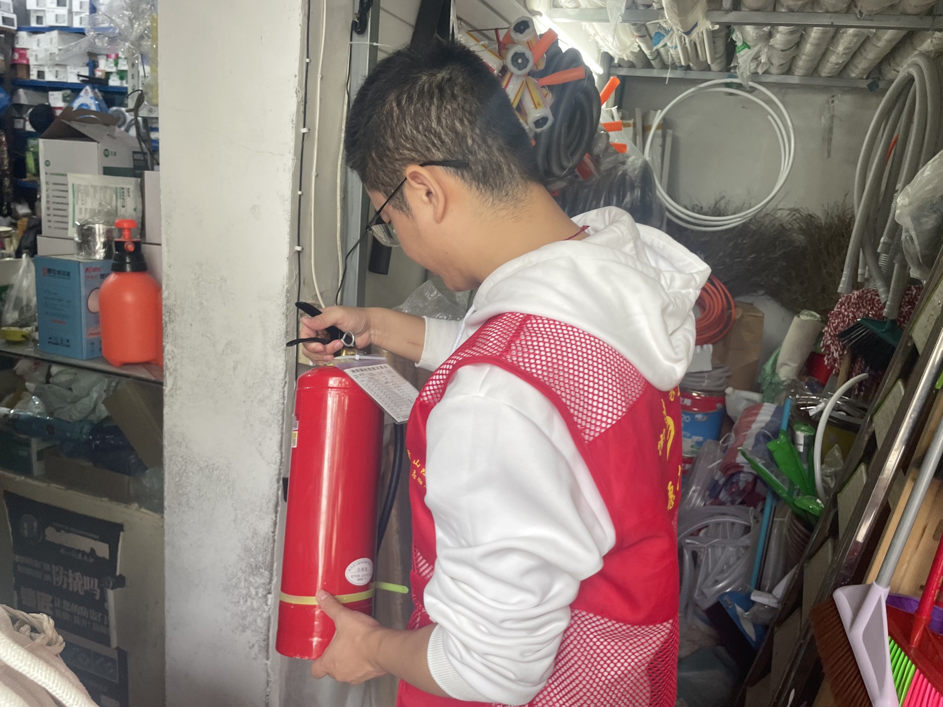行动中,社区工作人员与志愿者、网格员分组行动,对辖区内各商铺进行了细致检查。重点检查了商铺内灭火器的配备情况,仔细查看灭火器是否在有效期内、压力是否正常、喷管是否完好等,确保在紧急情况下灭火器能够正常使用,为商铺消防安全提供有力保障。