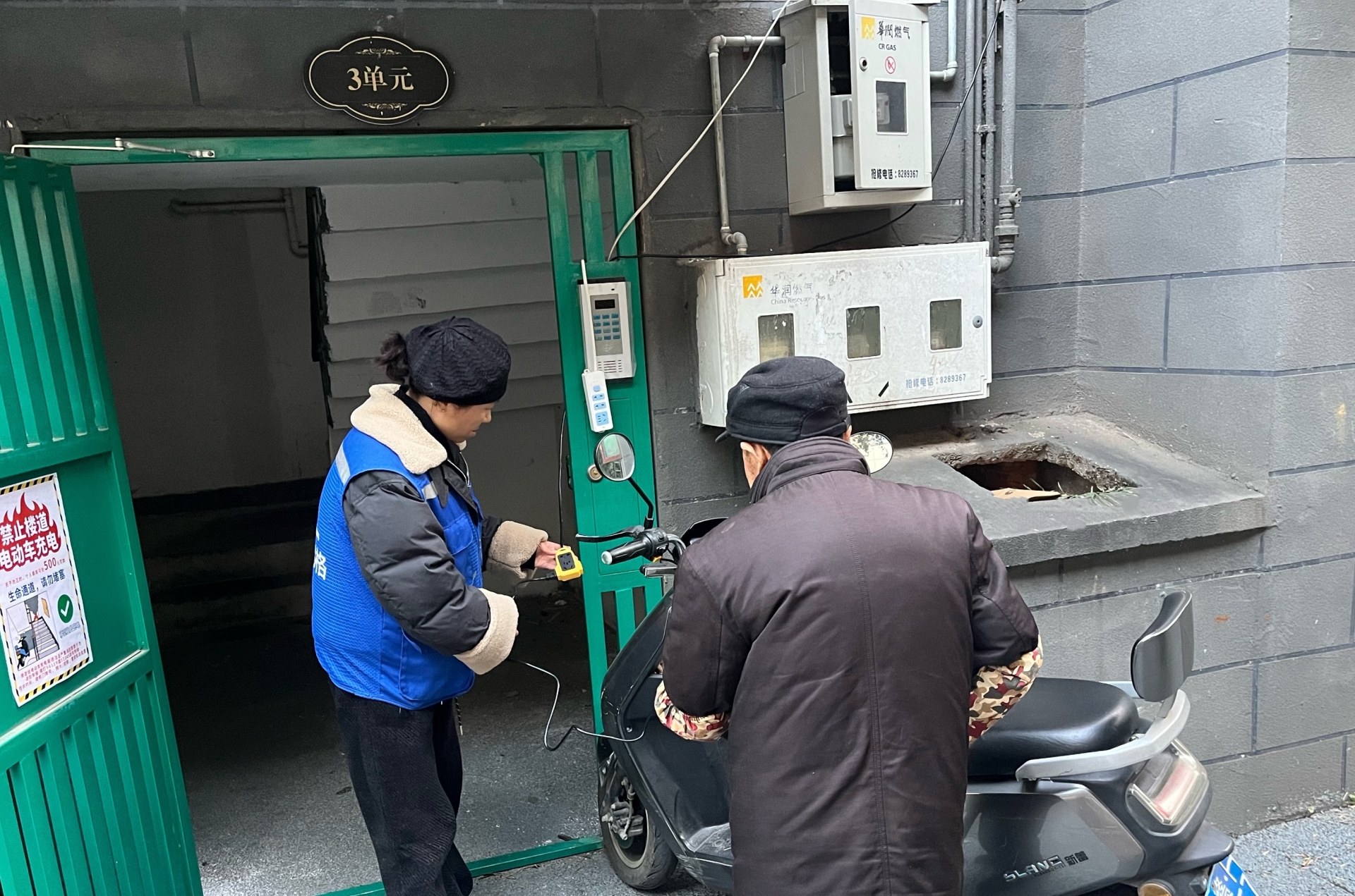 行动过程中,社区工作人员重点排查辖区商铺、居民楼道等重点区域,严查电动车私拉乱接电线充电、消防通道堵塞、用火用电不规范等安全隐患,现场对违规行为进行劝导整改,向商户和居民细致讲解消防安全知识,叮嘱大家提高安全防范意识,规范用火用电,杜绝违规充电,及时消除安全隐患。既守护居民安全,也为商户稳定经营保驾护航。