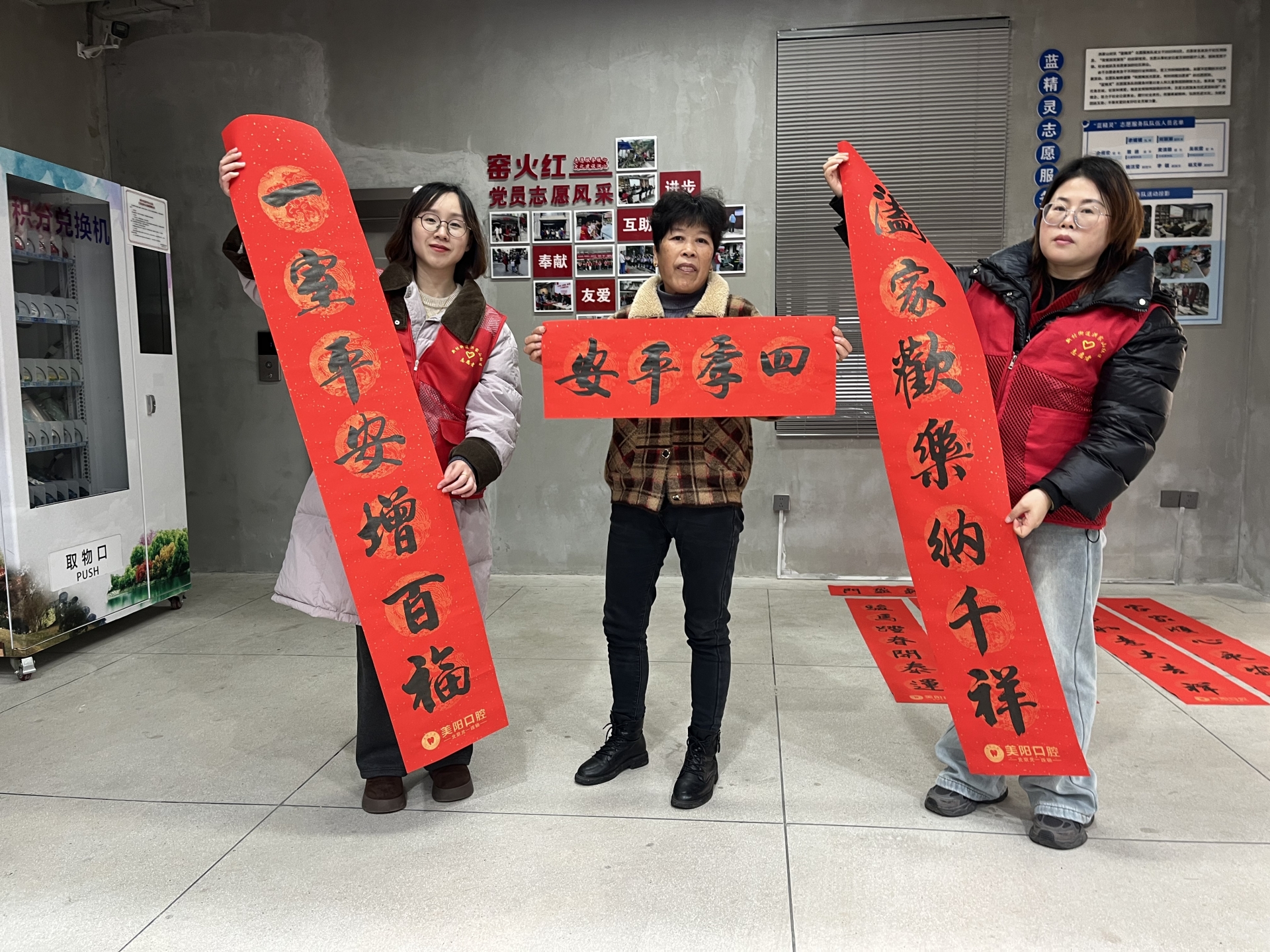 居民们怀着喜悦的心情纷纷驻足,或围观欣赏书法创作,或与书法家交流定制专属春联,现场欢声笑语不断。“每年都盼着社区的写春联活动,手写的春联比印刷品更有温度,贴在家里年味都更足了!”刚领到春联的王阿姨捧着红彤彤的作品喜笑颜开,迫不及待地向邻里展示。大家手持心仪的春联,脸上洋溢着幸福的笑容,纷纷合影定格这温馨瞬间。