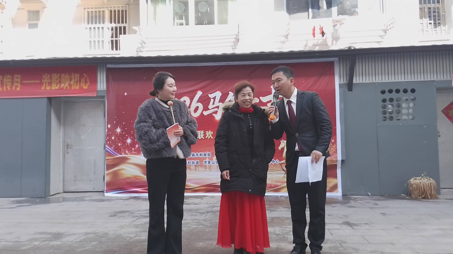 为丰富辖区居民精神文化生活,营造喜庆祥和、团结和睦的新春氛围,增进邻里情谊、凝聚社区合力,同时扎实推进安全生产、“三防”工作及反诈宣传走深走实,2月12日上午9点,新村街道洪家山社区联合市、区财政局、区妇联、珠山区恩途社会服务中心,在西路记忆广场举办“邻里大联欢·幸福吉祥年”新春文艺汇演活动。辖区居民欢聚一堂,载歌载舞迎新春,共叙邻里情、同享幸福年,现场年味浓郁、暖意融融。