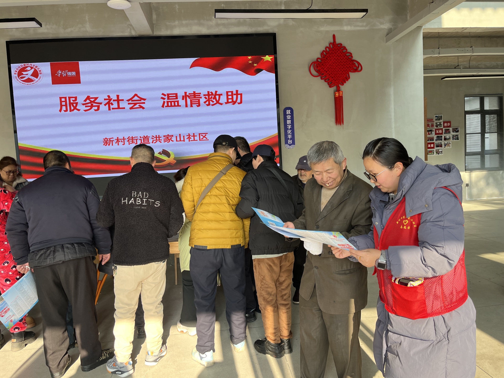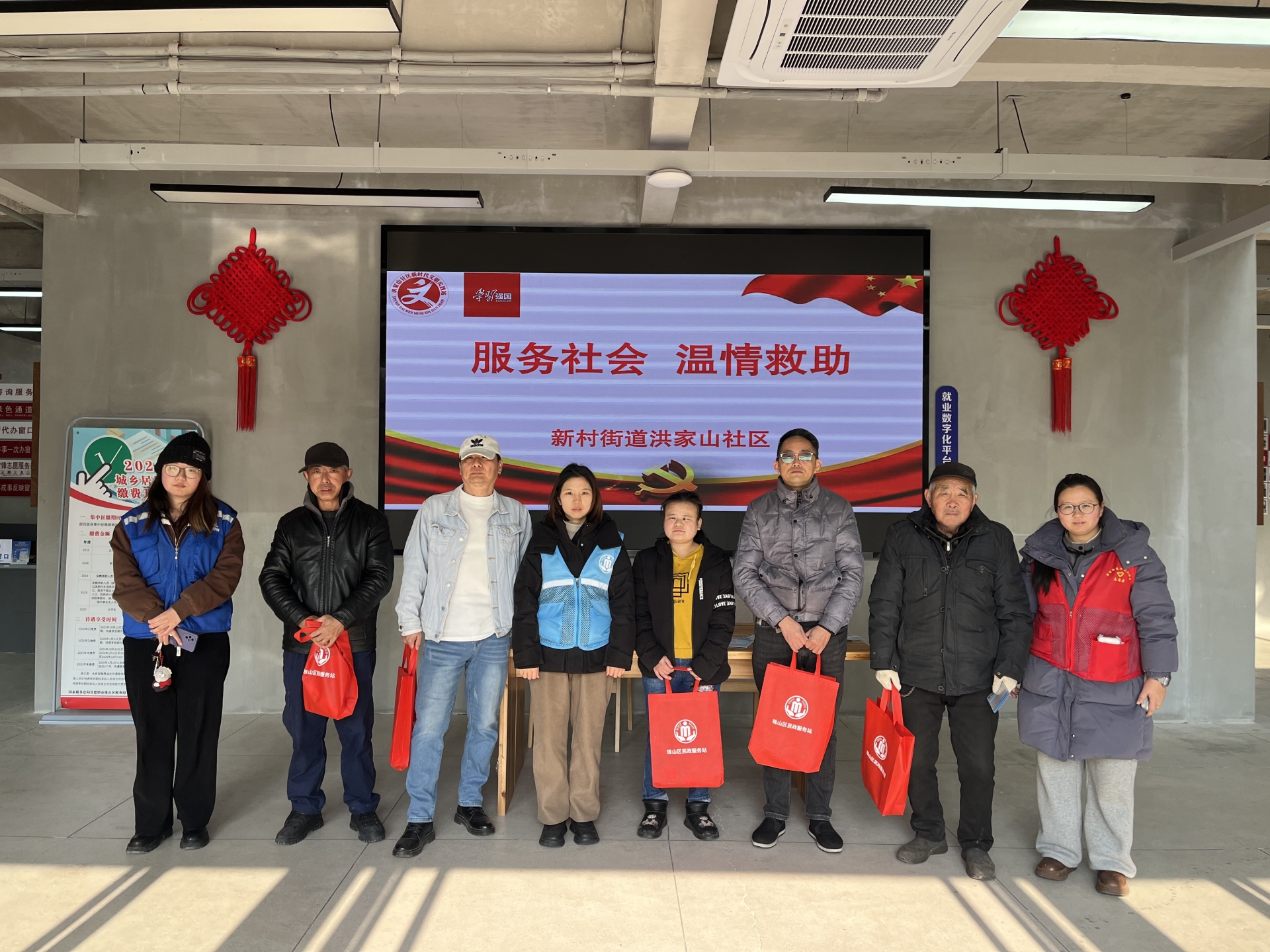 岁末天寒,暖意先行。为切实把关怀与温暖送到困难群众心坎上,近日,洪家山社区携手新村街道民政办共同开展“服务社会 温情救助”主题慰问活动,24位辖区困难群众受邀参与,在寒冬中收获了满满的关爱与暖意。